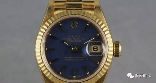 这款劳力士女表没有璀璨的钻石,没有夸张的装饰,除了它独特的深蓝色表盘看起来似乎没有什么特别。表盘似乎是珐琅的,时标的设计也很有特点,蚝式表壳,气泡日历窗。价格略高于41000美元,相信直到今天它仍然对女人充满吸引力。