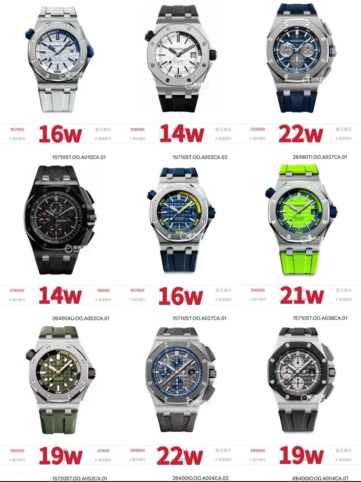 爱彼的皇家橡树系列腕表于1972年推出。皇家橡树(RoyalOak)原本是英国皇家海军一艘于1830年下水启用的战舰,在当时它的负载武器种类多寡及吨数均为全球之最,爱彼的该系列的设计灵感正是从此艘战舰上找到的。战舰上八角形的舷窗,就是爱彼表独特的八角形表面的由来。此外,该系列螺丝外露的革命性设计,打破了钟表业界遵循了数十年的不成文规定:所有运作的零件都得隐藏起来,皇家橡树也因此影响了全世界的钟表设计风格。皇家橡树系列还是顶尖高级表厂中第一个以不锈钢为材质来制造的表款,当年仅3300瑞士法郎的定价更震惊表界,开启了高级表进军运动表的先例。而皇家橡树以螺丝锁定的八角形外壳结合了圆形的表圈,造型厚实坚固,更一举奠立运动表形象的典型。